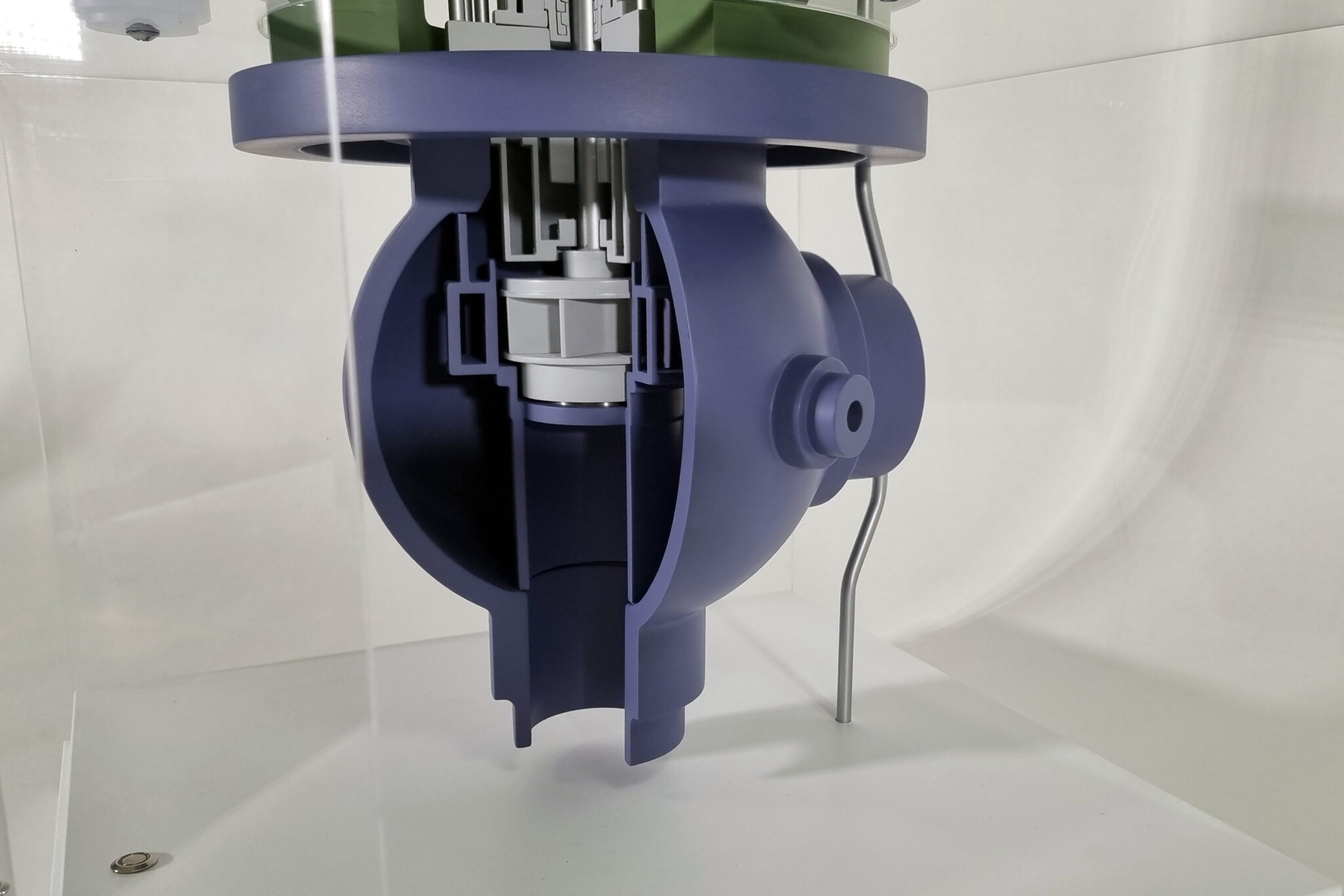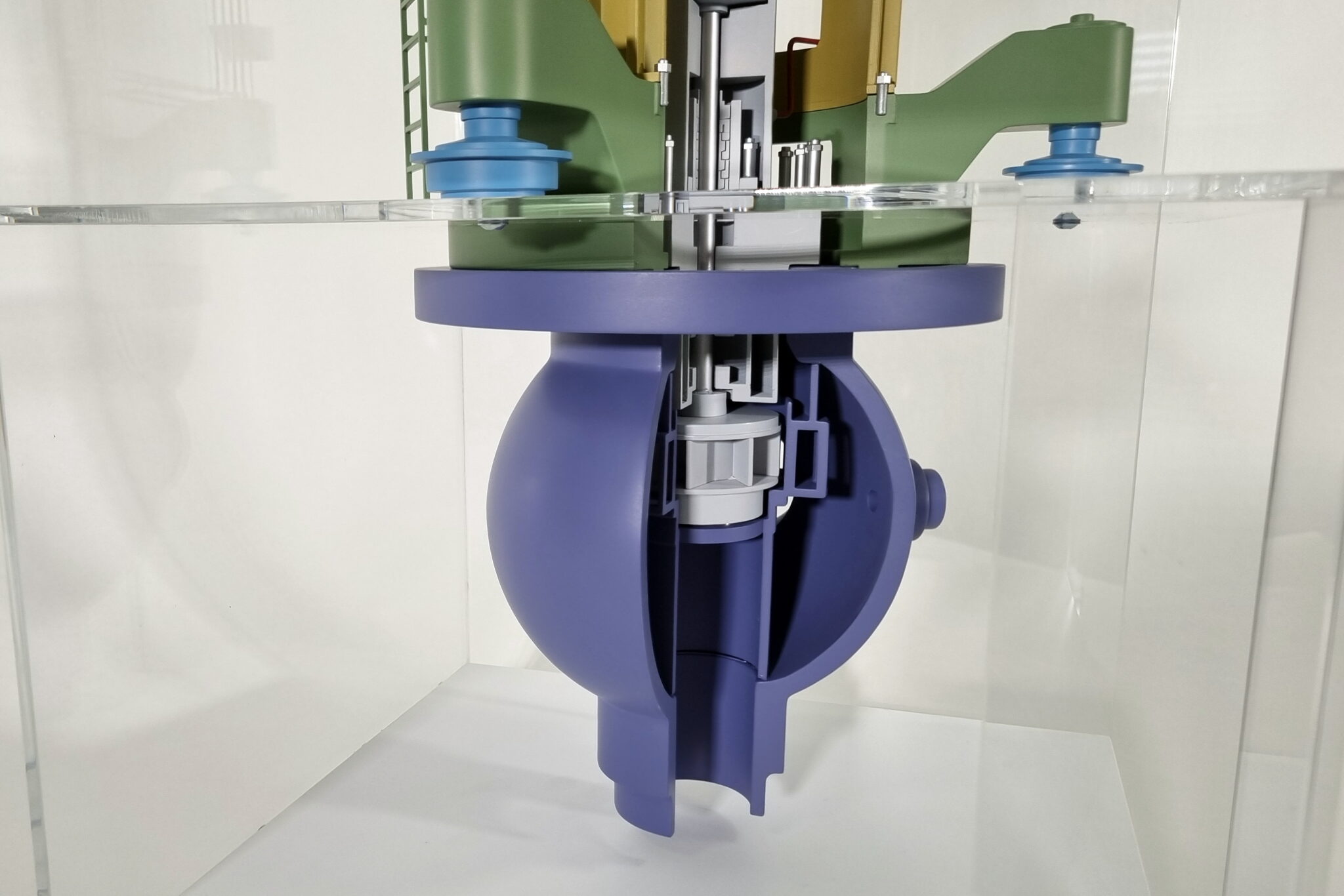Макет действующий и выполнен с разрезом и показом конструктива насоса.