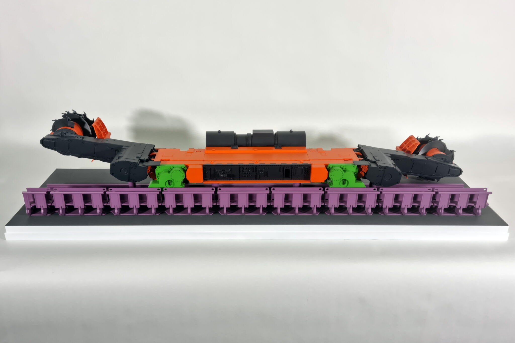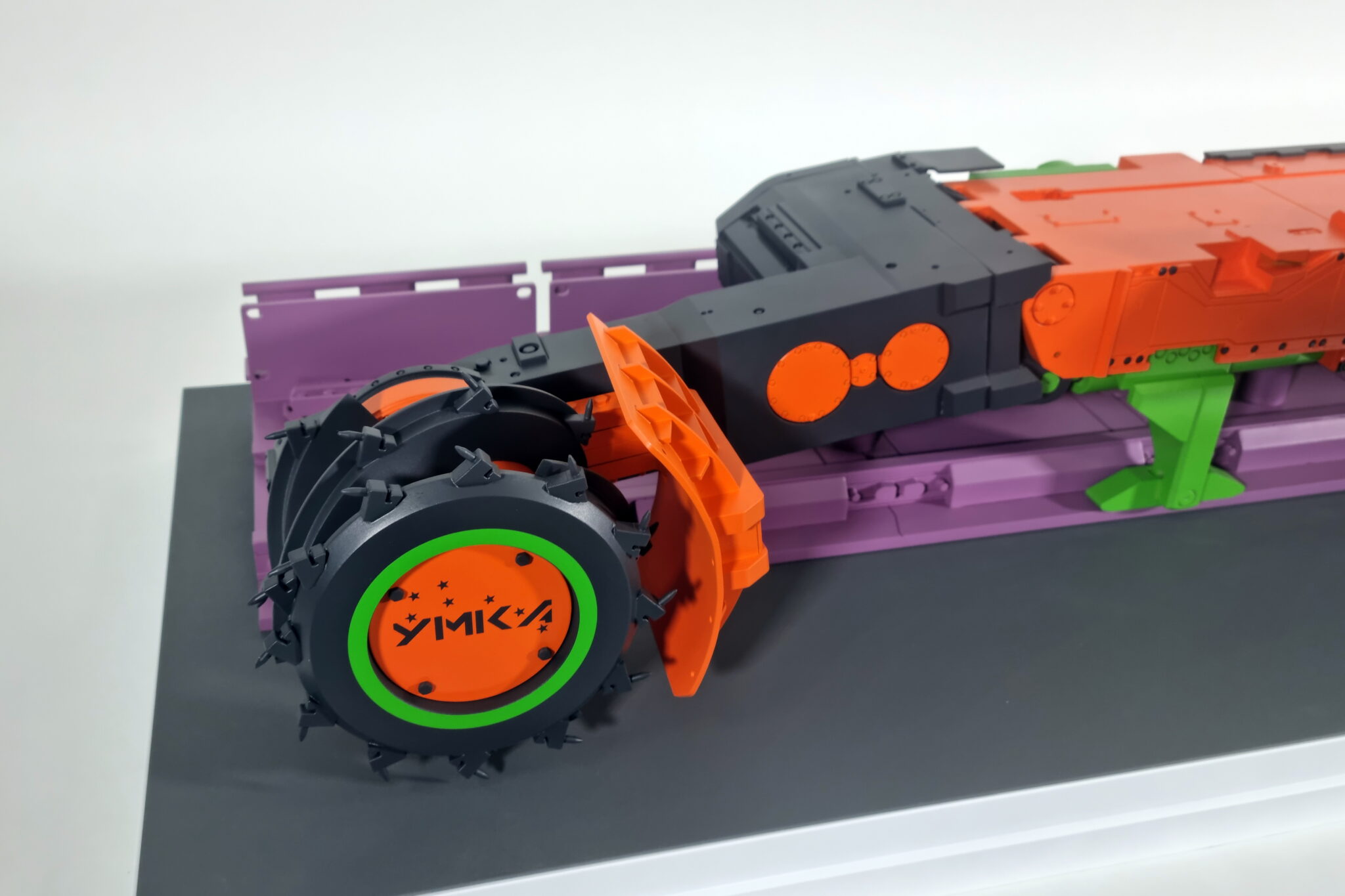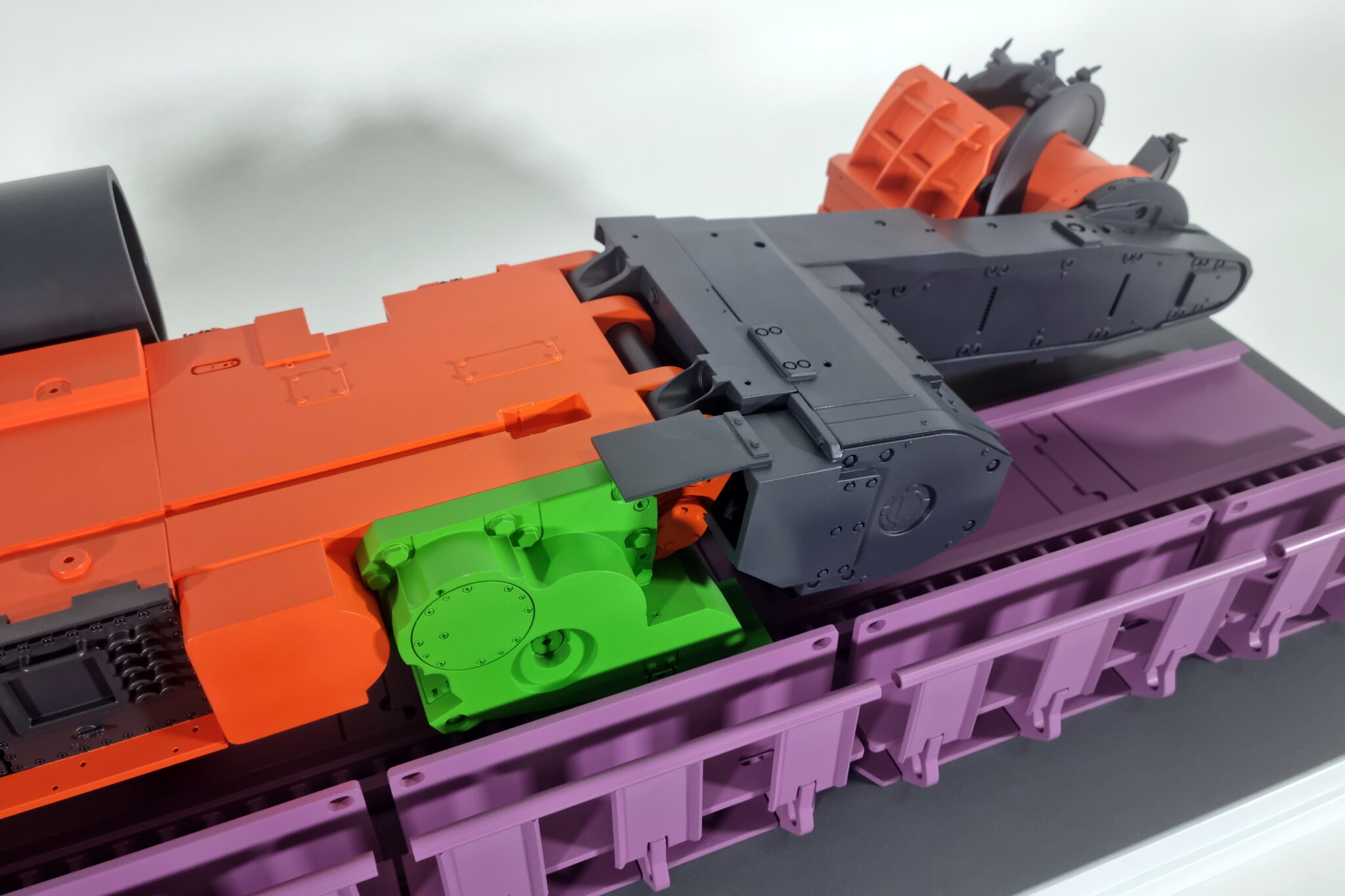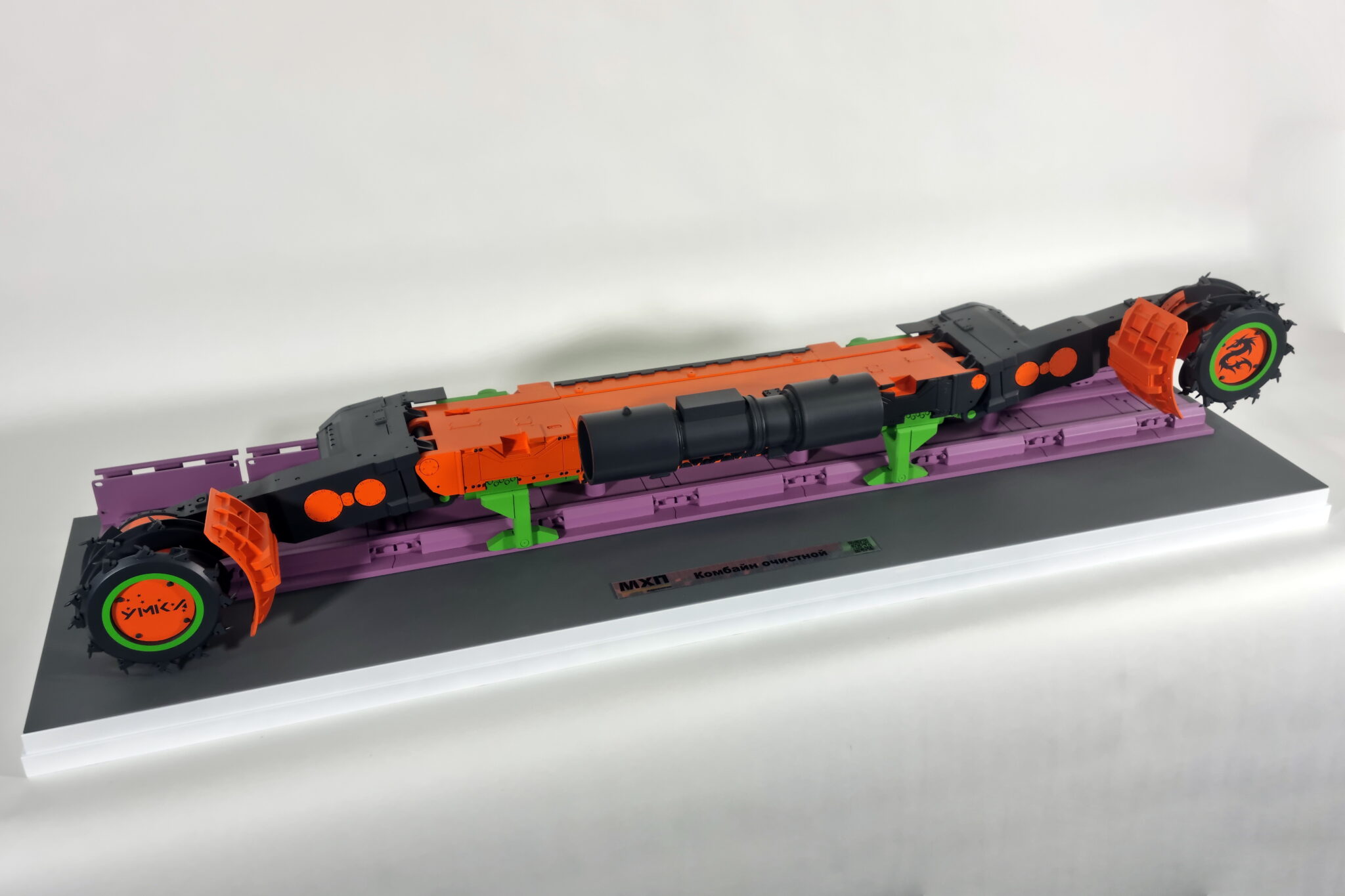 Выставочный макет очистного комбайна для выемки пласта по челночной или односторонней схеме работы.-