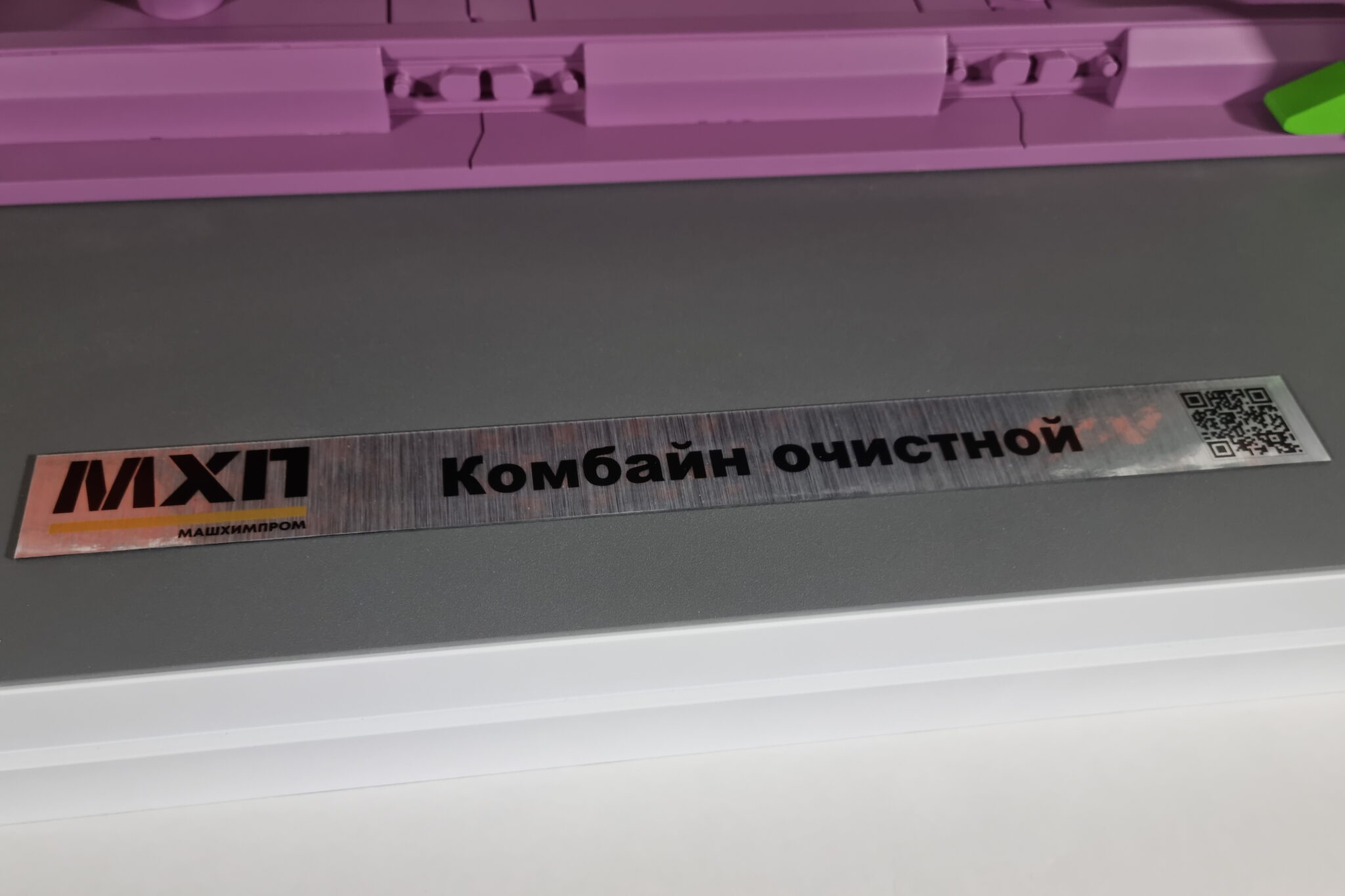 Табличка изготовлена из металлизированного пластика с нанесением логотипа заказчика и названием оборудования.