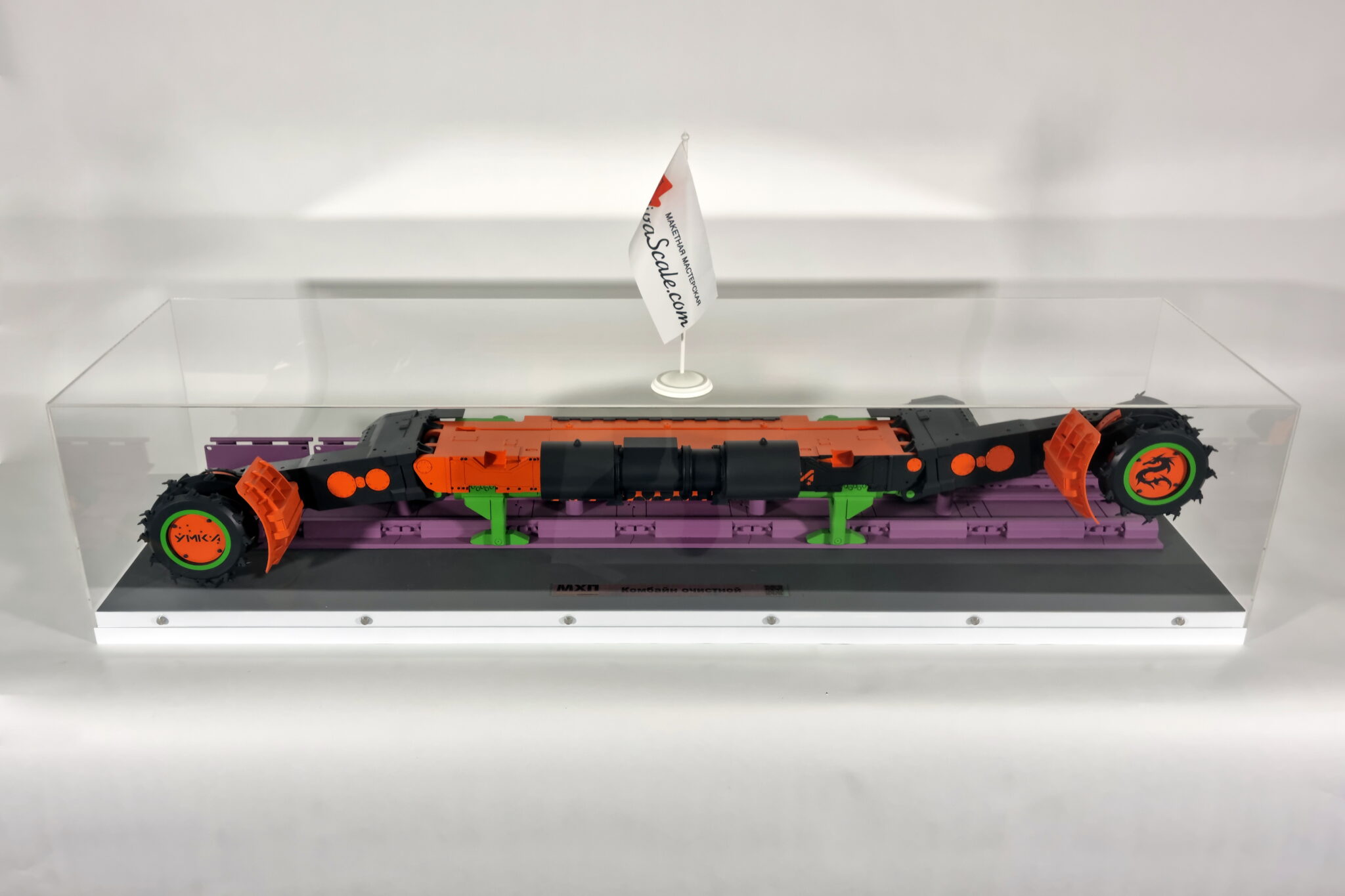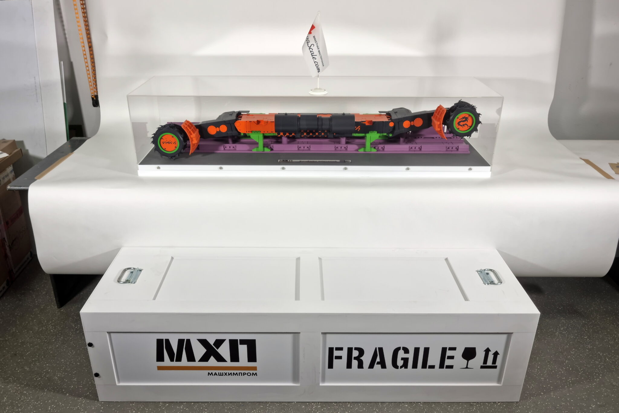 В комплекте к макету поставляется пылезащитный колпак из плексигласа и транспортировочный кофр из ПВХ.